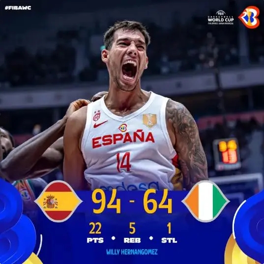 178直播讯 北京时间8月26日讯 男篮世界杯小组赛,西班牙今日对阵科特迪瓦,前者拥有埃尔南戈麦斯、加鲁巴、阿尔达马、阿布里内斯、克拉韦尔和老将费尔南德斯等多名NBA经验的球员。比赛上来,西班牙就率先进入状态打出9-0的完美开局,分差也是逐渐拉开到了两位数,好在是科特迪瓦在首节后半段找回感觉迫近比分,次节科特迪瓦的势头还在延续,分差最小时仅剩4分,但此后西班牙开始发力没有再给对手机会,半场结束时分差已经达到19分;下半场回来科特迪瓦完全没有了招架之力,第三节单节只拿到13分,分差在末节也是逼近三十分,比赛彻底失去悬念,最终西班牙大胜科特迪瓦迎来开门红。