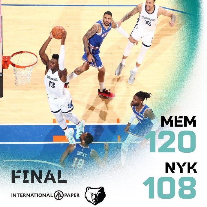 178直播2月3日讯 NBA常规赛,尼克斯今日迎战灰熊,前者上场比赛大胜国王排名东部第十一位,后者则是惜败76人暂列西部第三位。比赛上来灰熊就率先进入状态取得领先,虽然尼克斯及时调整将比分追至11-11平,但在首节末段灰熊还是将分差拉开到了两位数,之后的比赛尼克斯一直处于落后,半场结束时灰熊领先12分。易边再战,尼克斯虽然多次发起反扑,分差也是回到个位数,但始终没能获得反超的机会,兰德尔更是在最后时刻吃到个人第二次技犯被驱逐,最终灰熊轻取尼克斯避免连败。