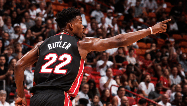 第四节,巴特勒助攻泽勒吃饼打进。巴特勒鱼跃断球,热火获得进攻机会,洛瑞投进三分球。巴特勒助攻洛瑞再中三分球,热火疯狂迫近分差。巴特勒飞起滞空对抗哈尔滕斯泰因,抛投命中。巴特勒摘板,他干拔跳投命中,分差只有3分。巴特勒封盖巴雷特,巴特勒两罚中一。随后巴特勒被吹抢篮板时推人犯规,巴特勒被格莱姆斯抢断,热火非常遗憾输球。