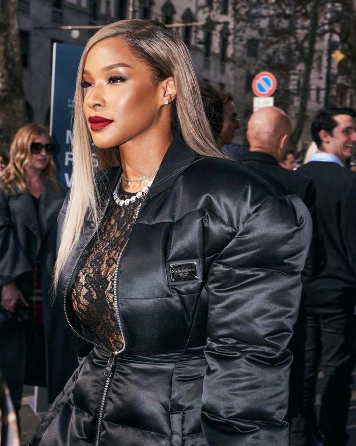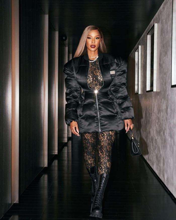 萨瓦娜性感亮相米兰时装周,身穿蕾丝透视打底,搭配黑色外套出镜,穿着黑色长靴,外套拉链刚好拉到一半,看到爱妻的性感照,老詹忍不住呼唤老婆赶紧回家。
