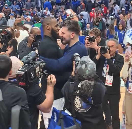 东契奇32+9+9连刷纪录:赛后拥抱詹姆斯 两人热聊有说有笑