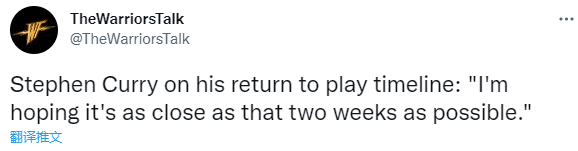 此前勇士官方曾宣布,库里的左肩伤势恢复良好,两周后接受重新评估。