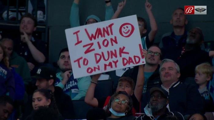值得一提的是,现场有小球迷高举标牌,希望锡安能够隔扣自己的父亲。