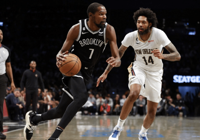 下半场,鹈鹕第三节40-28又打爆篮网,英格拉姆就像照镜子似的,单挑杜兰特打成2+1,小杜兰特火力全开,单节轰下12分,三节打完鹈鹕领先20分。