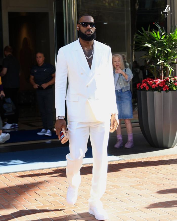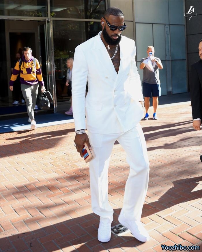 湖人官方晒詹皇入场照:一身白色西装太帅气 大战勇士再冲历史纪录