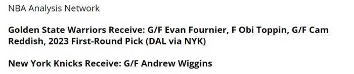 美媒《NBA Analysis》专栏记者皮尔西直言,与其眼睁睁看着明夏陷入困难抉择之中,倒不如勇士主动做出决定,送走维金斯。具体交易方案如下:勇士得到富尼耶+托平+雷迪什+23年首轮签,尼克斯得到维金斯。这笔交易对于尼克斯来说,零换整,增加锋线实力,打造布伦森+巴雷特+维金斯+兰德尔的梦幻四人组,而对于勇士来说,如果他们下定决心留住普尔,那意味着维金斯只有1年使用权。格林续约势在必行,普尔又要加薪,格林作为水花兄弟建功立业的一员,不能被放弃,普尔作为勇士库里的接班人,更不可能被抛弃,那只有维金斯。而这笔交易,托平和雷迪什都足够年轻,他们可以和库明加、怀斯曼、普尔、穆迪等人,建立未来勇士的发展方向。