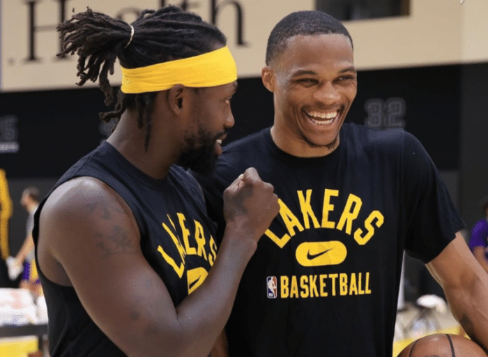 融洽!威少和贝弗利击掌拥抱+送毛巾,黑贝:他是爆发力最强后卫