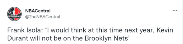 这个休赛期早些时候,杜兰特向篮网提出交易申请,导致不少球队开始接触篮网并谈判,只是篮网要价极高,名记Shams报道称,篮网收到的所有报价中,最高的一笔就是凯尔特人提出的布朗、怀特和一个首轮。最终,杜兰特和篮网老板蔡崇信达成协议,撤销交易申请,留在球队继续效力。