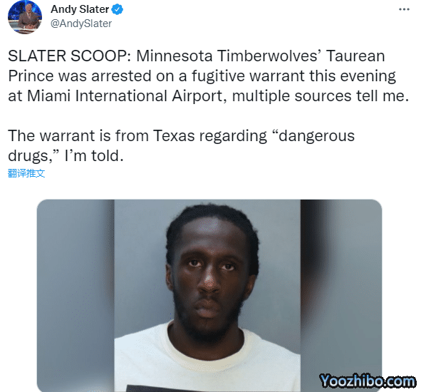 来源:178直播08-26 12:24178直播08月26日讯 ,森林狼悍将惹上事了,据美记者Andy Slater报道,森林狼球员托里恩-普林斯因在得克萨斯州携带危险药物被通缉,当地警方下达通缉令,最终普林斯在迈阿密国际机场被逮捕,并且入狱被关押,当地时间星期四下午6点被关押的。