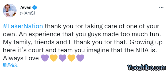 斯坦利-约翰逊正式发声,发推写道:湖人国度,感谢你们的照顾!这段旅程真的很有意思,我的家人、朋友和我都不胜感激。我在这里长大,这里就是NBA球场和球队理想的样子。永远爱你。