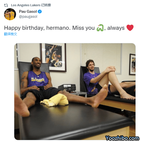保罗-加索尔晒昔日合影,发推写道:生日快乐,兄弟,我一直在想念你;瓦妮莎晒09年合影,配文写道:生日快乐,宝贝!我爱你,我非常想念你#44岁生日快乐。