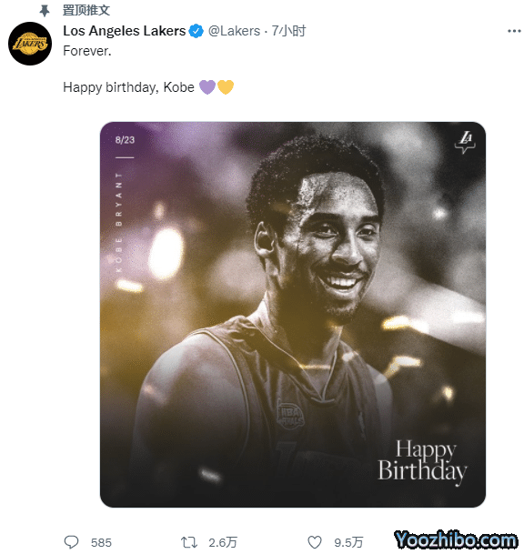 NBA官方晒科比旧照,配文写道:记住科比的生日 1978年8月23日(当地时间);湖人官方晒科比旧照,并且置顶推文,发推写道:永远,科比生日快乐。