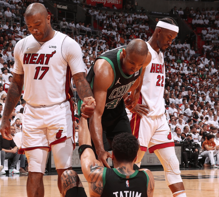 来源:178直播05-26 15:11178直播05月26日讯 ,NBA东决天王山凯尔特人击败热火,拿下G5从而系列赛3-2领先夺赛点,斯玛特火线复出,塔图姆20投7中拿到22分12篮板9助攻,上半场9中1仅4分,但下半场18分带队拿下胜利,24岁塔图姆创纪录,仅次于科比成为NBA季后赛第2年轻1500分先生。布朗19投10中拿到25分4篮板,下半场19分以及末节13分,双探花下半场37分以及末节22分打爆热火。