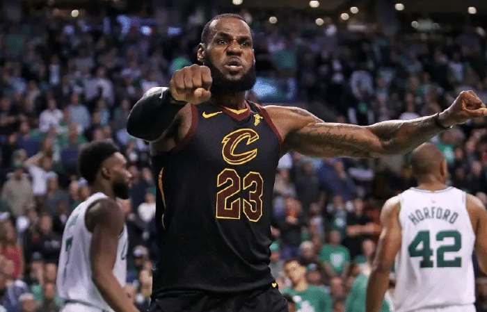 在东决抢七大战中,詹姆斯打满全场,轰下35分15篮板9助攻带队杀进总决赛,当时老詹累瘫在东部冠军的颁奖现场;骑凯东决大战,詹姆斯场均狂砍33.5分9篮板8.5助攻,2018年的全力詹靠一己之力奋勇杀敌,那时的老詹真是强的离谱。