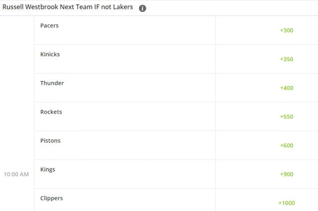 威少最新下家赔率出炉!若离开湖人能去哪儿?步行者领跑雷霆第三