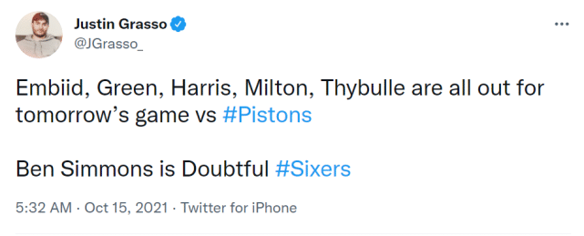 西蒙斯大概率缺战活塞!费城做好两手准备 名记:他离队立场没变