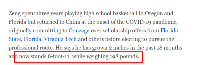 重磅!曾凡博计划参加2022年NBA选秀 自曝已长高到2米11