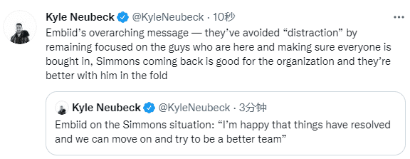 里弗斯透露西蒙斯本周参加训练!恩比德回应:我很高兴事情已经解决