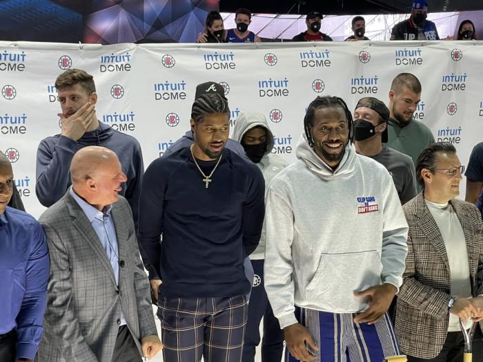 快船新球馆正式奠基!小卡乔治面无表情一幕遭调侃,詹姆斯回应笑哭