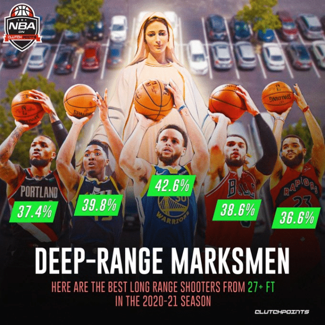 来源:178直播09-14 15:16178直播9月14日讯 ,美媒clutchpoints公布了一组2020-21赛季超远三分命中率的排名和数据。这里对超远三分的定义是出手距离至少是27英尺(约8.23米)以外,而NBA目前三分线离篮筐最远的是7.25米,最近是6.7米(两个底角)。
