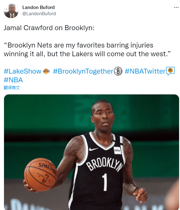 谈到新赛季的夺冠情况,克劳福德表示:如果没有伤病,我选择篮网会赢下总冠军,不过湖人会是西部冠军。换句话说,克劳福德认为健康的篮网和湖人会夺得东西部冠军,篮网会在总决赛击败湖人夺得总冠军。