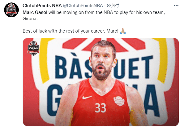 来源:178直播09-13 11:15178直播9月13日讯 ,36岁小加索尔将会离开NBA并且重返西班牙联赛,据欧洲媒体EuroHoops的报道,马克-加索尔将会签约西班牙的赫罗纳篮球俱乐部,小加索尔将在自己的球队结束职业生涯。