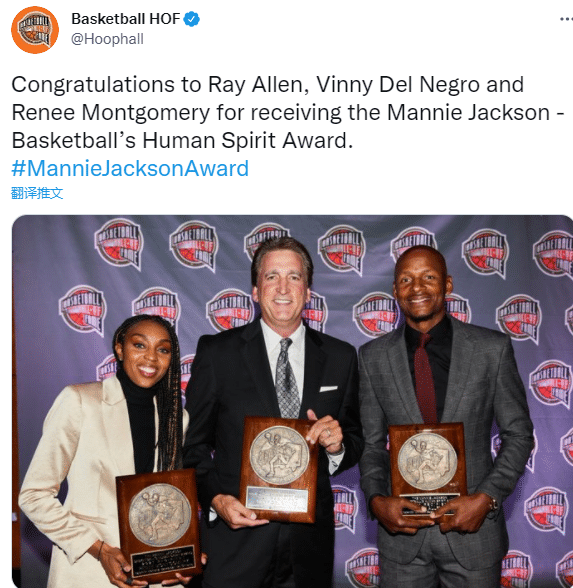 另外要说的是雷-阿伦在今天获得曼尼-杰克逊篮球人道精神奖。
