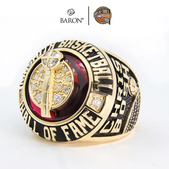 皮尔斯张开双臂、韦伯把手放在胸口、波什满脸笑容、大本握拳最霸气,都带着名人堂戒指——上面镶着红宝石,刻着名人堂字样和入选者的名字。