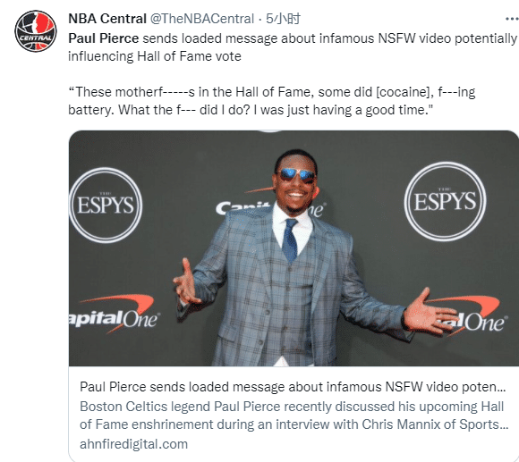 今年和皮尔斯一起入选奈史密斯名人堂候选名单的NBA名宿还有克里斯-波什,本-华莱士,克里斯-韦伯,托尼-库科奇等人;皮尔斯不仅对此前的不雅直播不道歉,而且透露其他候选人也做过这样的事,如此言论真是害人又害己。