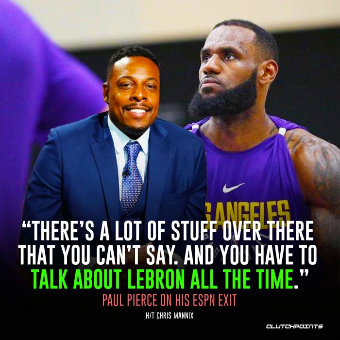谈到遭ESPN解雇,皮尔斯表示:不管怎样,我和他们的工作关系已经结束了。在ESPN对我来说不是一个很好的选择,那里有很多话你不能说,而且你必须一直谈论詹姆斯。