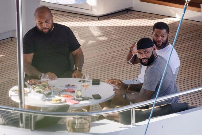 36岁的詹姆斯正和爱妻萨瓦娜一起在意大利度假,度假期间,老詹仍旧在游轮上坚持苦练,就像在家中训练房似的,他又是赤膊且光着脚苦练核心力量,咬紧牙关十分卖力,一旁的桌子上放着他的特大号水壶。