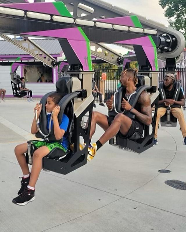 35岁霍华德十分勤奋,先是直播苦练翻身后仰跳投,训练之后老魔兽带着家人去游乐场,配文:珍惜生命(爱心和两座冠军奖杯表情)。