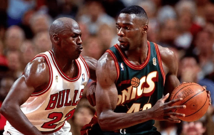 到了总决赛,公牛面对的是超音速,那年的超音速在西部先后击败了奥拉朱旺率领的火箭以及爵士犹他双煞,因此实力不容小觑。但总决赛前三场,公牛大比分3比0取得领先,随后超音速连扳两局给乔丹制造了一些麻烦。不过回到主场后,篮球之神没有再给超音速机会,最终4比2击败超音速夺得队史第4冠。