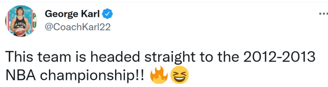 有趣的是就在几天前,前NBA名帅乔治-卡尔还调侃湖人的阵容:“这支球队是要去争2012-13赛季的总冠军吧?”他调侃的那个赛季,正是ESPN列出的这个赛季。