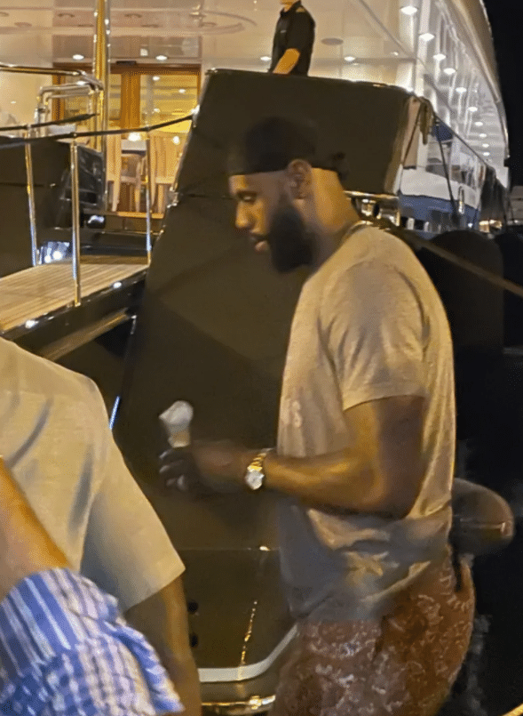 詹姆斯度假画面曝光,身穿灰色T恤和印花短裤,戴着黑色发带、手里应该是拿着甜点,无数球迷在现场欢呼、唱歌,詹姆斯挥手示意;詹姆斯登上豪华游轮之后,站在船头向热情的球迷送飞吻从而表达爱意,此时球迷再次陷入疯狂,甚至有人吹起了流氓哨。