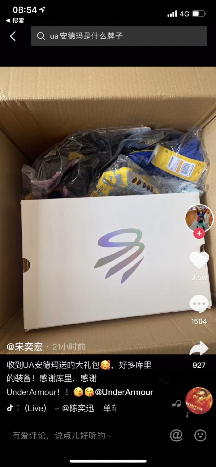 库里是安德玛的代言人,送装备可以说是最好的方式!宋奕宏在其社媒上晒出了自己收到的库里给他寄来的大礼包,其中都是UA的装备,并附上了一段话“好多库里的装备,感谢库里,感谢”小孩子总是喜欢收到礼物的,更何况是自己偶像的礼物。