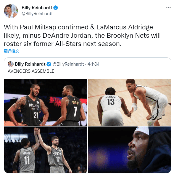 来源:178直播09-03 16:01178直播9月03日讯 随着米尔萨普同意加盟篮网和阿德获准重返赛场并且最可能重返篮网,篮网新赛季的15人大名单已经提前确定下来,随队记者感叹:史上最有天赋的阵容。