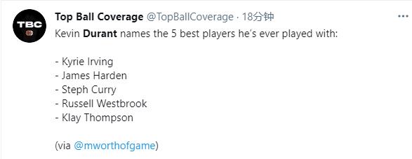 杜兰特评生涯前五队友!欧文第1哈登第2,首选没威少+伊巴卡上热搜!
