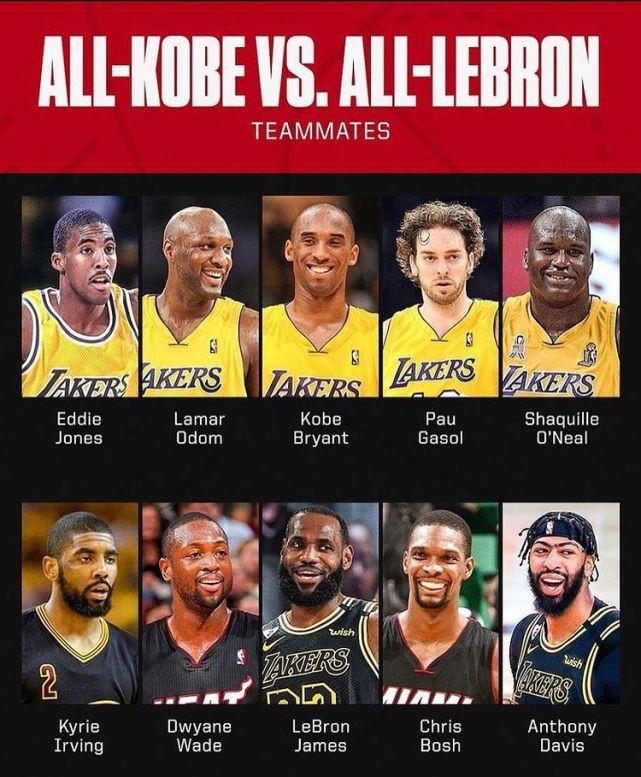 只从目前这张图上的对决来说,还是更多球迷支持詹姆斯一方。毕竟,詹姆斯队的这五位球星中,入选全明星次数最少的欧文,都有7次。而科比一方,埃迪-琼斯只入选过3次全明星,奥多姆更是从未入选过全明星。