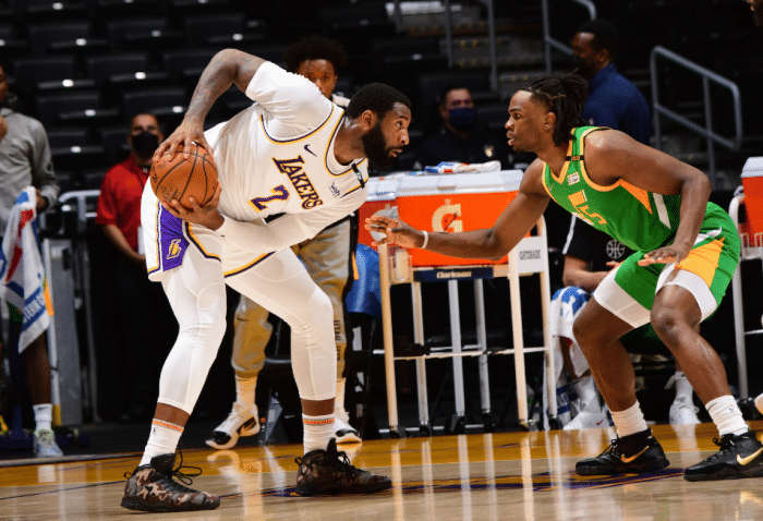 在3月21日对阵老鹰的比赛中,詹姆斯遭遇右脚踝扭伤,随后一直处于养伤的过程中。由于戴维斯早前也遭遇受伤,因此在过去近1个月的比赛中,湖人都处于双核缺阵的困难局面中。