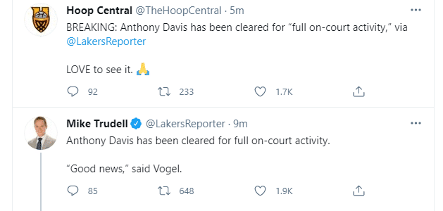 湖人好消息!浓眉复出时间确定,挑战联盟第一,先打15分钟