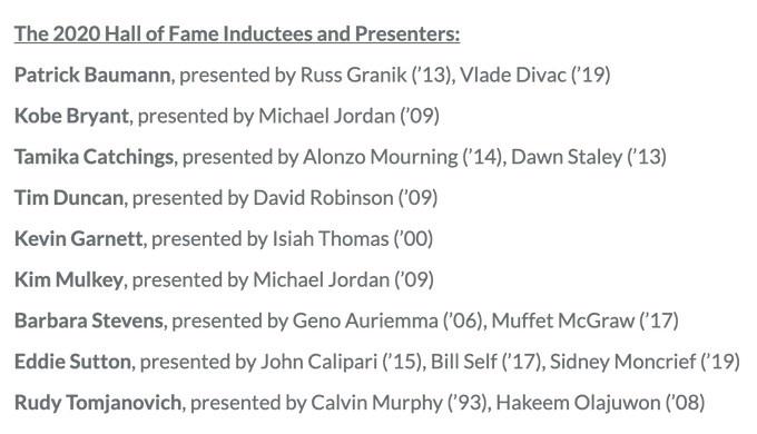 由于疫情的原因,2020年名人堂入选仪式推迟到20201年5月15日举办,入选者或者他们的家属可以选择以前的名人堂球员来介绍他们;如今乔丹正式成为科比引荐人,乔科之间再次联系起来,这也是对科比生涯的一种认可。