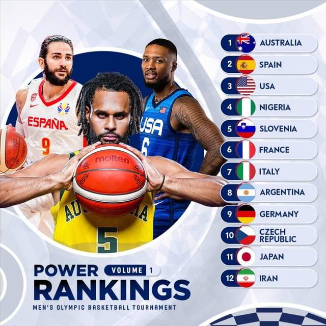 奥运男篮实力榜出炉:澳大利亚第一,西班牙紧随其后,美国仅在第三