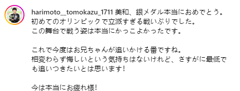 来源:178直播08-11 10:57178直播讯 北京时间8月11日,日本乒乓球运动员张本智和在社媒晒出与妹妹的合影,配文写道:祝贺美和赢得银牌!你在首次奥运的表现太好了,能看到你在这个舞台战斗真的很棒。现在轮到你的大哥来追赶你了;我没有遗憾,但我至少想要赶上来!你做得真棒!