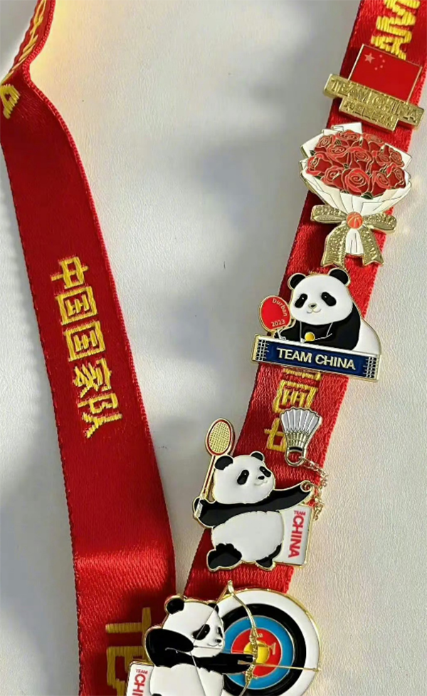 据悉,多名外国运动员都晒视频炫耀自己拿到了中国队的pin(徽章)。