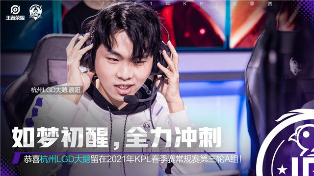 杭州LGD大鹅留在2021年KPL春季赛常规赛第三轮A组!初心荣耀,从A组再战,我们一起期待杭州LGD大鹅的精彩表现。