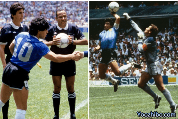 1986年世界杯,马拉多纳在和英格兰的比赛中上演上帝之手,把皮球打进。当值主裁判、突尼斯人阿里-本纳赛尔和边裁都没有看到这个手球。