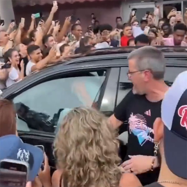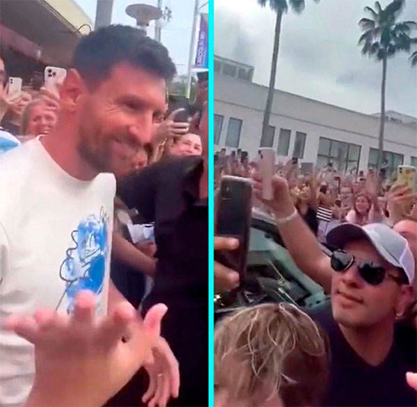 梅西逛完了阿迪店之后出来,店外已经围满了球迷们,梅西、安东内拉和三个孩子,还有为数不多的几个保镖,他们走出店之后现场的球迷们疯狂了,纷纷高喊梅西的名字。梅西也笑着回应,梅西走在最后,一名疯狂的女球迷搂着梅西合影,成为当时最幸福的人。梅西一家走进汽车,但因为球迷们实在太多了,真的是寸步难行的状态。
