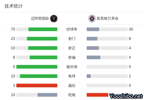 来源:178直播10-20 08:33 178直播讯 北京时间10月20日6:00,美职联常规赛,迈阿密国际主场对阵新英格兰革命。上半场,卢卡-兰戈尼闪击破门,苏亚雷斯远射打偏,格雷塞尔兜射被扑出,韦甘特头球攻门击中门框,哈桑-优素福助攻博雷罗破门扩大领先优势,苏亚雷斯三分钟连入两球扳平比分。下半场,弗里奥尼头球攻门顶偏,苏亚雷斯头球攻门被扑出,克雷马斯基推射破门,博比-伍德进球被吹,梅西替补登场上演帽子戏法,最终,迈阿密国际6-2逆转战胜新英格兰革命。