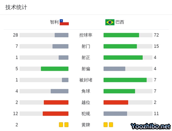 巴西2-1智利升第4 巴西开场69秒丢球+连扳两球逆转绝杀